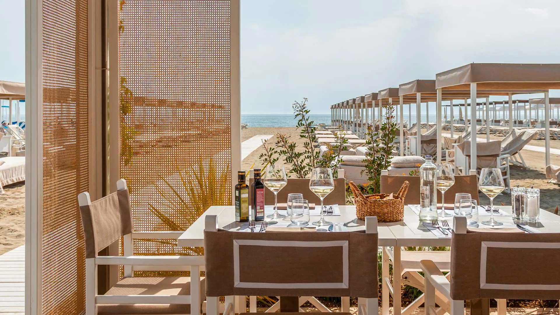 Una volta in spiaggia, tutto scorre con semplicità. Le tende sono spaziose, curate, pensate per farvi stare comodi davvero, che siate in coppia o in gruppo. Le cabine aggiungono quel comfort che, una volta provato, diventa irrinunciabile. Il ristorante lavora su ingredienti freschi e pescato del giorno, e si sente: piatti perfetti per un pranzo che non appesantisce o per una cena con la luce che si abbassa dietro gli ombrelloni.